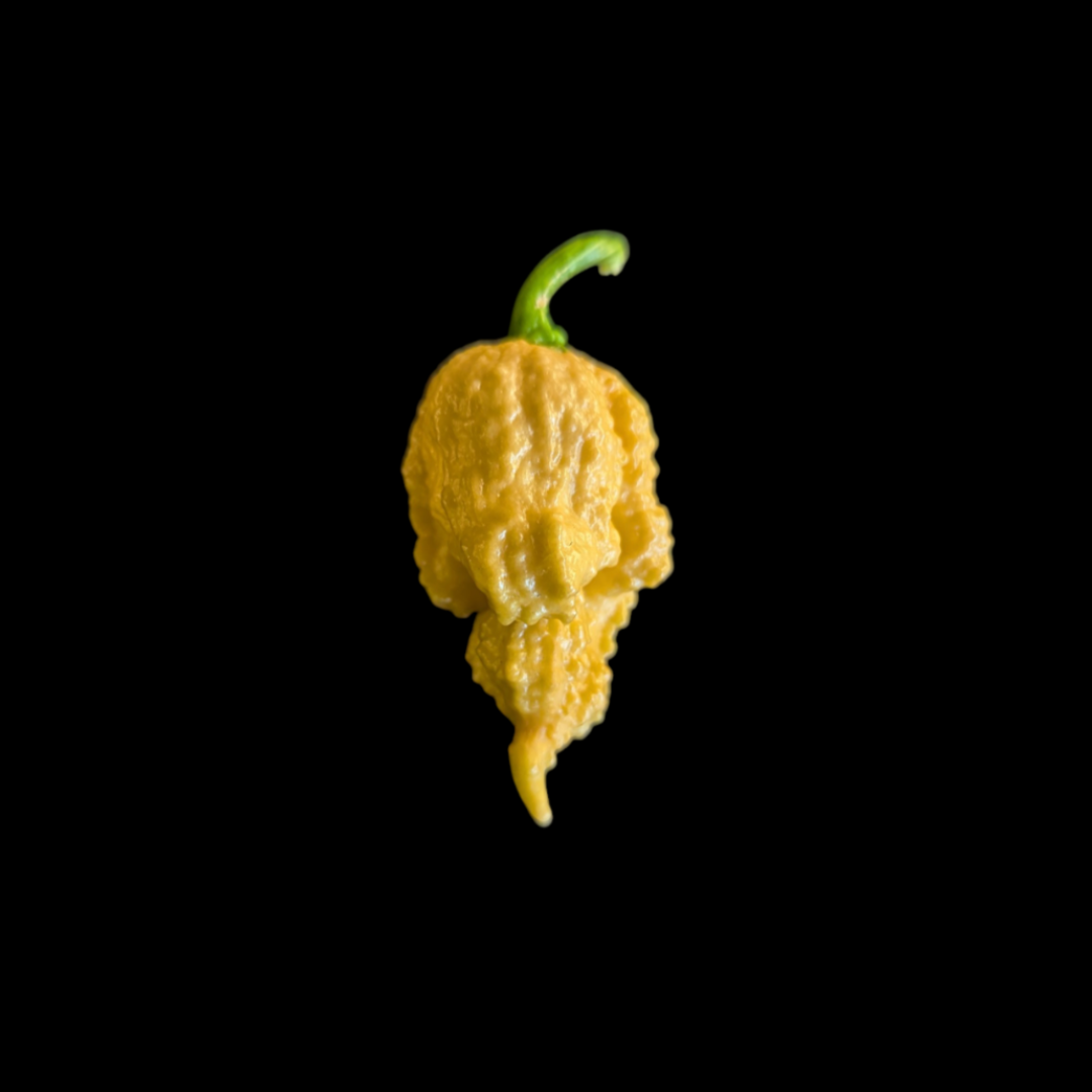 This variety was provided to us by Drew from Hurt Berry Farms. It is a personal cross of his consisting of Brainstrain x OG Lava x Moruga Scorpion. It is considered unstable so the appearance main change slightly in its next generation. The Pepper itself is super prickly, gnarly and loaded with heat. It has a strong aroma and flavour.