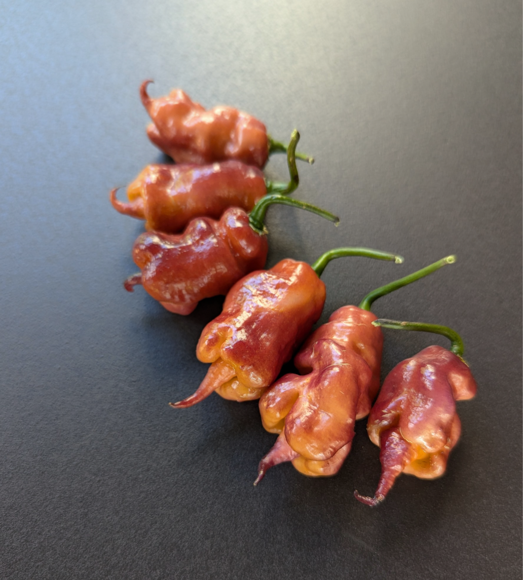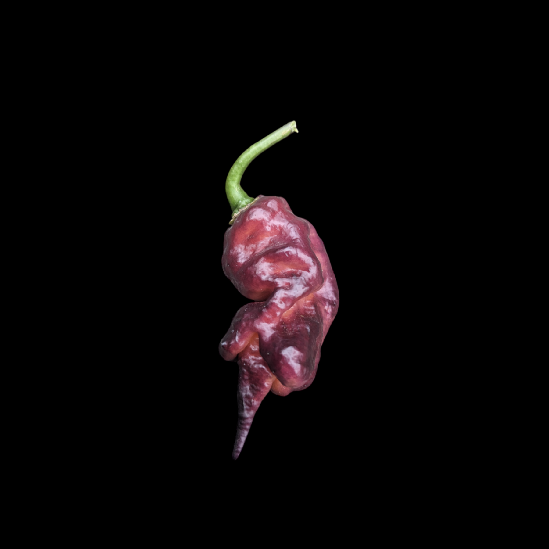 This is a wild one! Although our phenotype has darker shades of purple they are none the less amazing looking in both shape and colour. Plants will develop dark foliage and dark pods before they ripen with their pink undertones. The flavour is citrusy before getting hit with loads of heat.